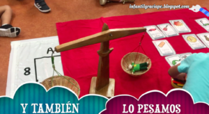 Como cada personaje en el cuento tiene una ficha técnica con datos como medida, peso…. programé actividades de lógica-matemática sobre medidas de longitud y peso, de forma manipulativa con los personajes (peluches) y su posterior ficha donde expresar los resultados.